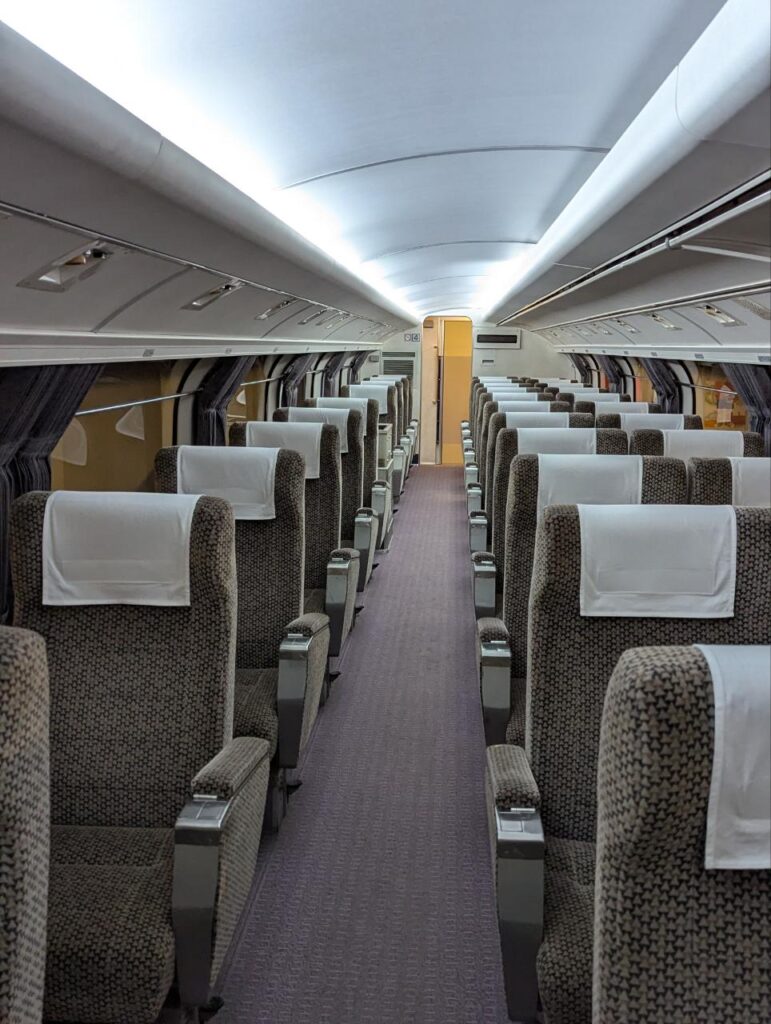 グリーン車だそうです。2階建て車両で、2階はゆったりとしていて、1階は個室のようになっていました。