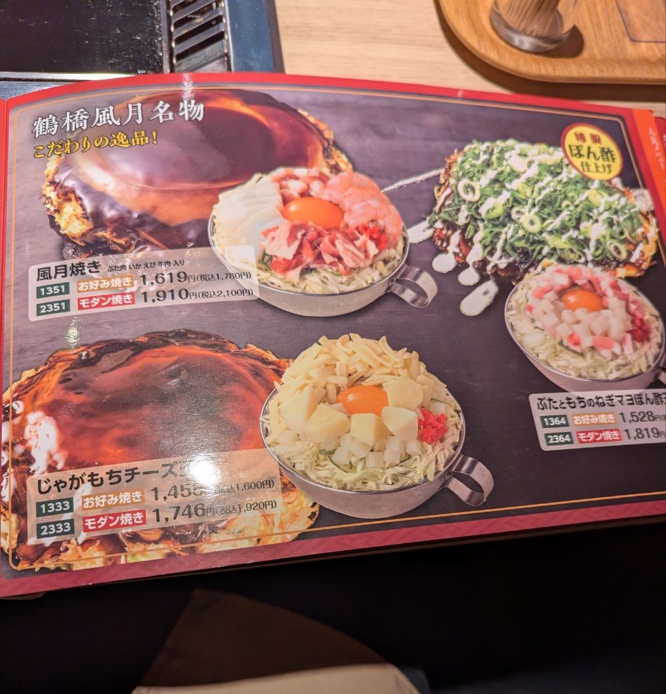 我々はビナガーデンズテラスの中にある、鶴橋風月へ行きました。