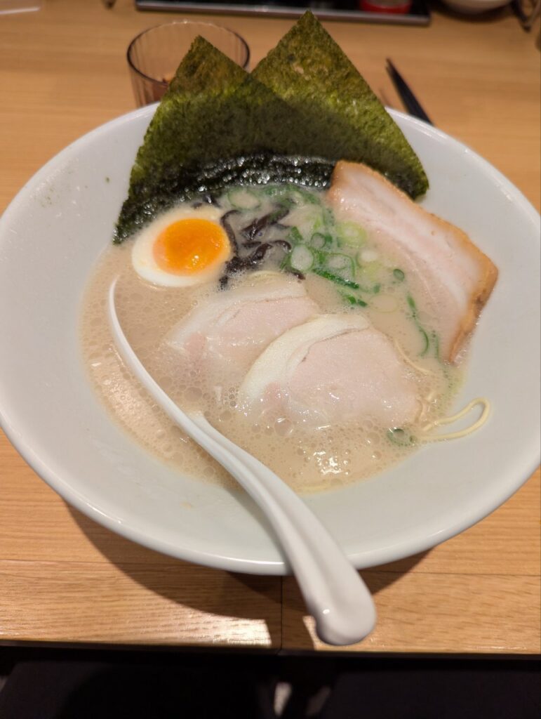 泣く子も黙る一風堂さんの白丸。スープが絶妙。とんこつだけどこってりしていなくて、全くしつこくない。