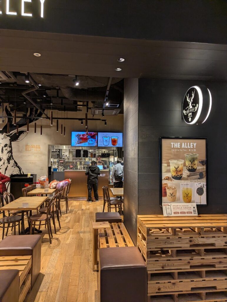 コーヒーでもと思ったのですが、スタバは相変わらずにぎわっており、奥に進むとこんなカフェがありました。初めて来ます。鹿角巷というんですか、タピオカが有名なお店なんですか。