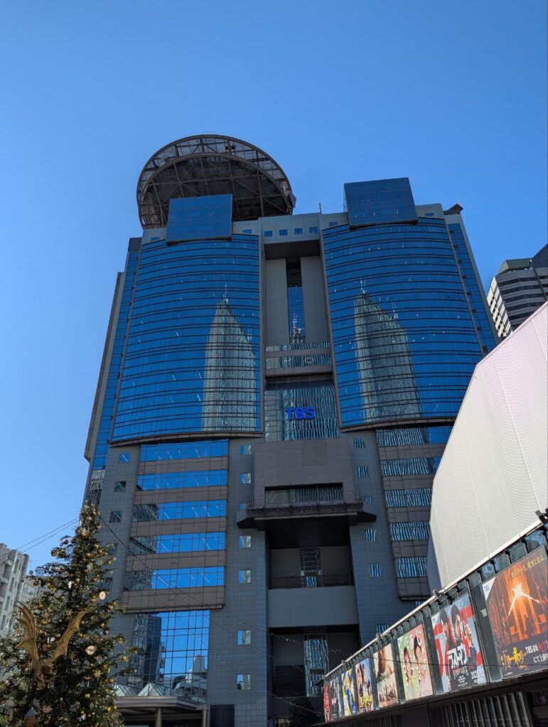 階段を登りきると、目の前にTBSのすんごい高さの社屋がそびえたって見えた。