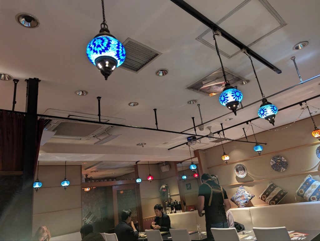 階段を下りていくと、素敵な店構え。赤いランプの灯が、トルコっぽいなんて思いながら、店に入る。