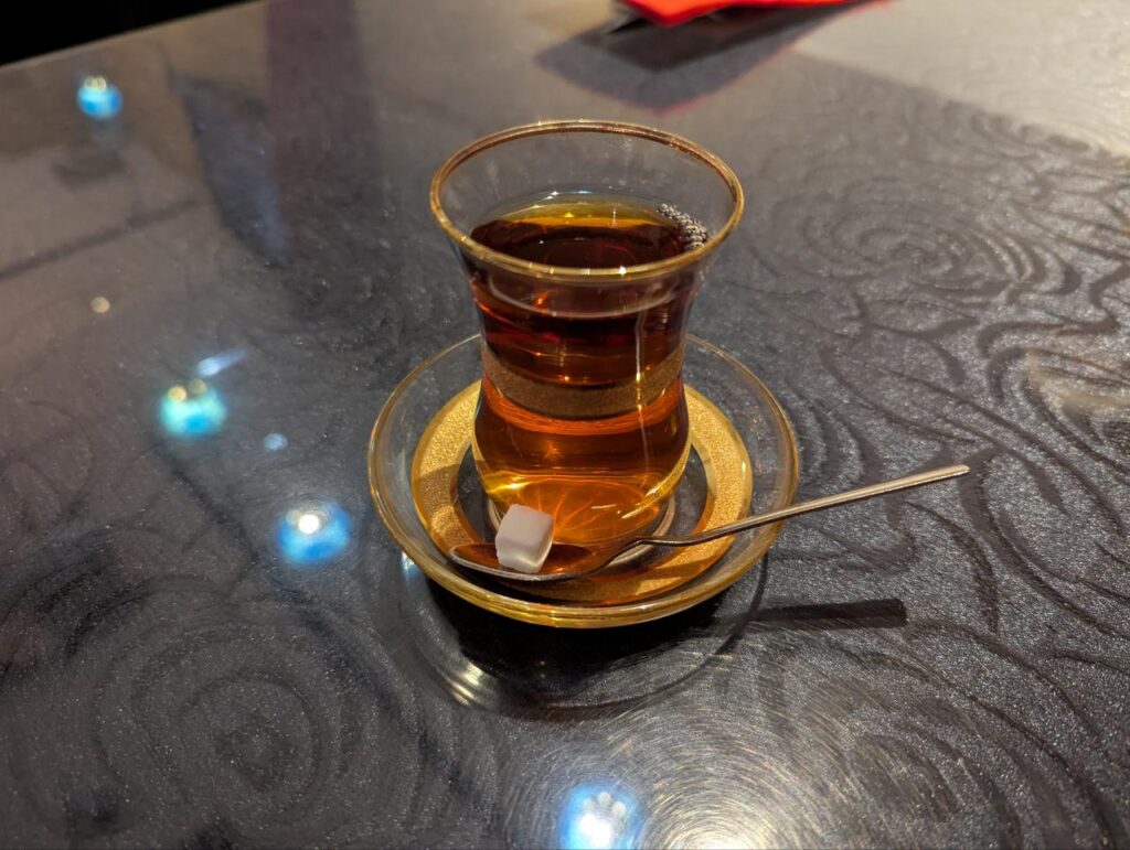 いっしょにチャイティーも出てきました。チャイティーというとインド料理のヨーグルトみたいなのを想像しましたが、紅茶みたいなお味です。見た目も紅茶です。角砂糖を少し入れて飲みます。
