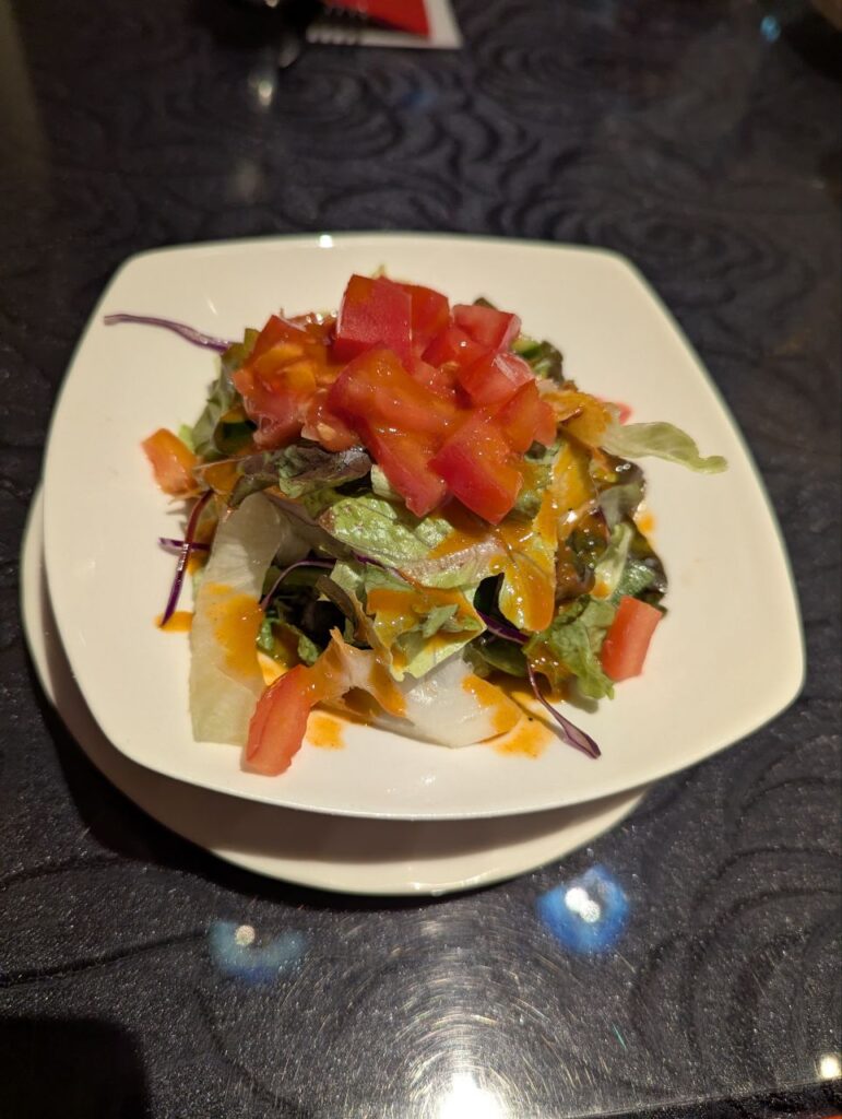 娘と合流し、まず、出てきたのは、サラダ。新鮮なレタスとトマトのサラダ。