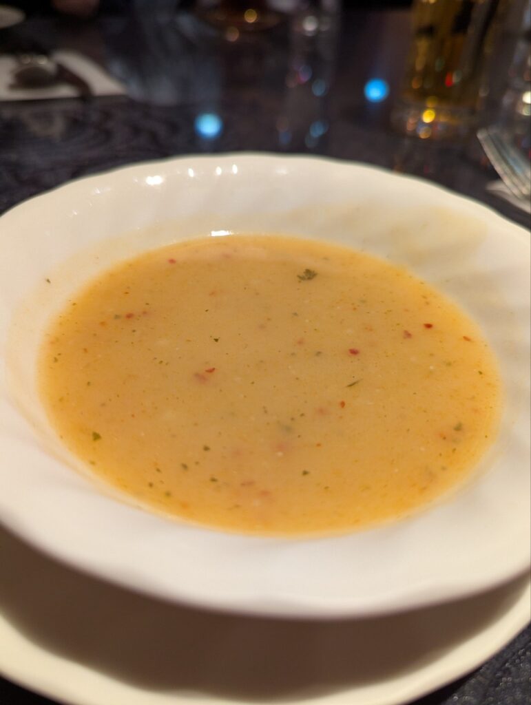 スープがおいしい。複雑なお味。コーンスープとかとはまた違った、深い味わいだけどあっさりしている。