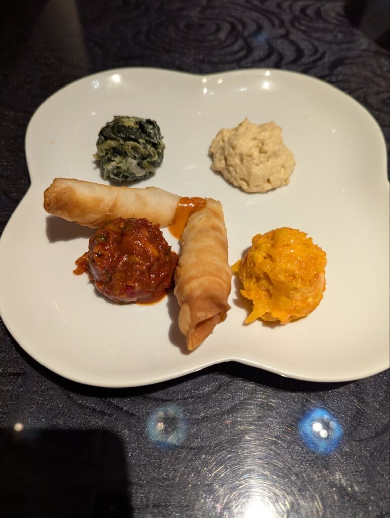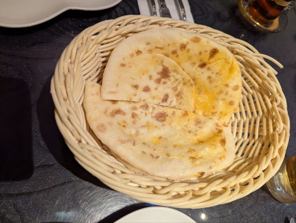 その後はデイップするかぼちゃや、ホウレンソウと、ナンが出てきました。よくインドのカレー屋さんとこに出てくるような、良く膨らんだ、おっきいサイズのナンとは全く違いました。