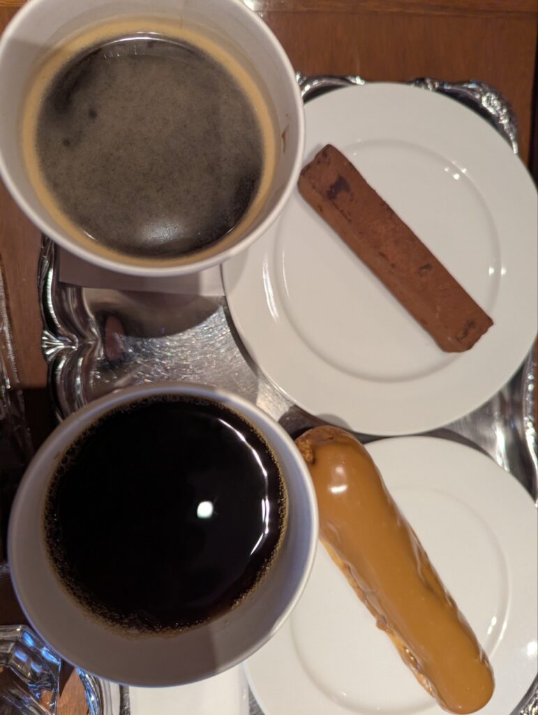 イタリアンカフェです。ドルチェはチョコラータと、エクレールエスプレッソ。